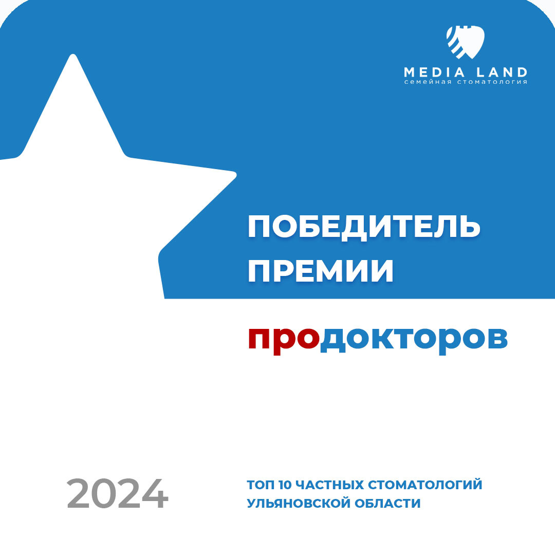 Семейная клиника «Медиа-Лэнд» - лауреат Всероссийской Премии ПроДокторов-2024 в номинации «Лучшая частная стоматология».